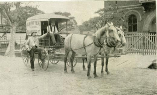 | Christian Wintter's Bakery Wagon in front of the Court House, 1898 |